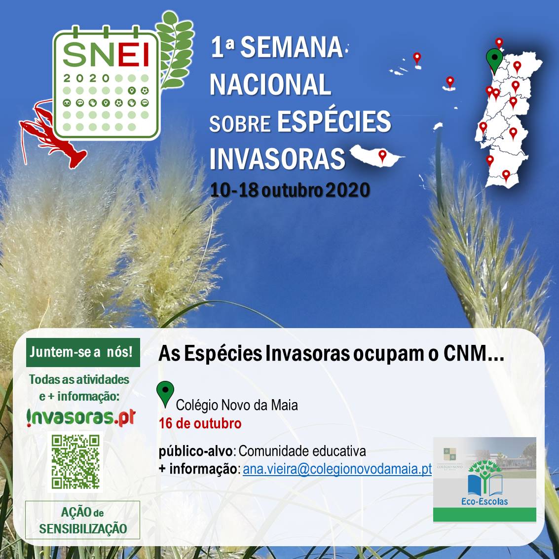 O clube irá recolher em alguns locais espécies invasoras que colocarão em alguns pontos estratégicos do colégio e com algumas das características das mesmas (pequenos cartazes). Será passada a mensagem do que são, do que provocam à biodiversidade e o que cada cidadão/estudante poderá fazer para as "combater". Se possível no final dessa semana os responsáveis pelo clube irão fazer um mapeamento das espécies invasoras presentes no espaço envolvente do colégio.
